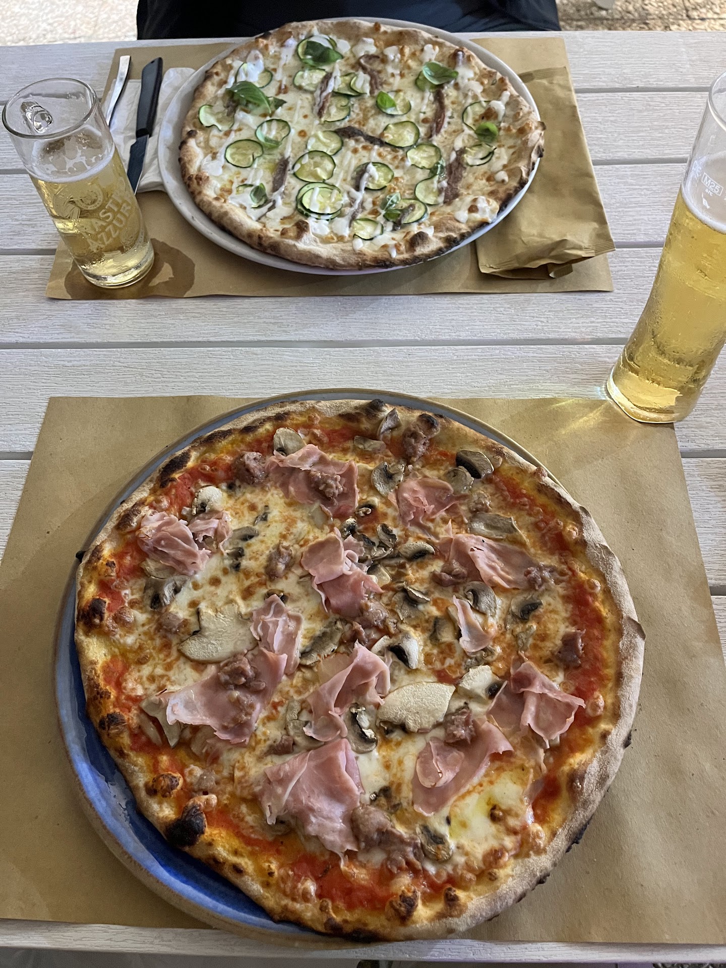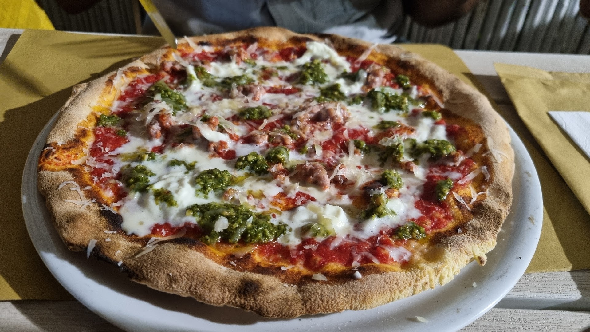 Sono stato qui per la prima volta per il compleanno di mia cognata. Che dire, cominciamo dal locale: 1 - il locale è prettamente estivo, perché all'interno non ho visto posti a sedere (o almeno non ci ho fatto caso io) ma sono disponibili posti nel retro fronte spiaggia, o davanti l'ingresso del locale nel piazzale. 2 - le pietanze: praticamente è possibile ordinare solo pizza e qualche affettato come antipasto. Non esistono i fritti, quindi dimenticate le patatine fritte o altre cose similari. Per gli amanti della pizza contemporanea con il megacornicione, lasciate stare non è il posto che fa per voi, perché qui troverete una pizza con cornicione praticamente assente, molto fine simil romana. Ottime comunque le materie prime utilizzate per i condimenti della pizza e se volete sfidare la sorte vi consiglio la pizza "Darietto" che è a fantasia del pizzaiolo. Quindi che dire pizza sicuramente con un buon sapore e con buoni condimenti, ma super fina e senza cornicione, quasi una piadina. Una cosa che non ho capito sono le bottiglie d'acqua, solo piccoline, cosa che fa storcere un pó il naso perché se si fa un tavolo con molte persone si è costretti ad ordinare una marea di bottigliette, sprecando così anche molto plastica. Forse una scelta commerciale per guadagnare qualcosina in più. Per concludere quindi diciamo che è un locale con una buona pizza fina stile "m "romana" senza lode. Per usare un frase che sentivamo sempre a scuola " il ragazzo è bravo ma potrebbe fare di più". Ultima cosa i prezzi, qui devo dire che ci siamo, è tanto che non vedevo una margherita a 6 euro, ecco diciamo che qui è punto a loro favore. Quindi che dire, se volete mangiare una pizza decente fronte spiaggia fa per voi, se cercate la contemporanea...