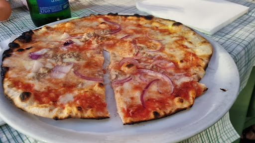 Prima di scrivere questa recensione, sono tornato 2 volte per vedere se magari la prima volta era una serata no ( che può capitare...) Solo che..... Cominciamo con ordine: siamo tornati con una coppia di amici che ci avevano detto che erano stati qualche giorno prima e che gli era piaciuta la "pizza" (poi capirete il perché delle virgolette). Diciamo che appena arrivati nel cortile esterno il mio amico aveva preso degli arrosticini e devo dire che erano davvero ottimi, morbidi e gustosi. Poi facciamo l'ordine e chiediamo 3 "pizze", delle patatine e una grigliata mista, e il cameriere ci fa "faccio portare tutto insieme?" e noi gli diciamo che andava bene, poi lui di nuovo " allora mando l'ordine è!" E noi riconfermiamo (questa tornerà utile dopo..) insomma arrivano dopo 10 minuti le pizze ,le patatine e le bruschette e la grigliata no.... ci può stare visto che la carne ha tempi di cottura diversi... solo che dopo un'ora la grigliata non arrivava... chiedo alla cameriera come mai e che cmq lasciasse perdere ormai visto che era passata un'ora e mi dice " un attimo che controllo...... guadi non è arrivata perché l'ordine non è mai stato fatto " e mi guarda anche con un tono come se fosse colpa mia, si gira e se ne va... ora li avrei dovuto incazzarmi ma non ne vale la pena perché anche qui posso capire l'errore umano (non la confusione perché eravamo i primi alle 19:30 a prendere l'ordine e non c'era nessuno..) ma cavolo neanche a dire mi spiace, come posso rimediare.... veniamo poi alle "pizze "... diciamo che il sapore è pure buono, ma per favore non chiamatele pizze.... come vedete dalla foto sembrano piadine condite.... quindi serata da dimenticare e personale non all'altezza... anche chi era addetto alla brace era un continuo incazzarsi e dire parolacce ( anche qui se sei lontano dalla clientela no problem fai quel che ti pare, ma non puoi stare così con i tavolini a 2 metri di distanza!) Quindi per me è decisamente un no, peccato perché la carne sembrava davvero buona, ma tutto il contorno è stato un...
