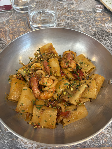 Sono stato in questo locale a pranzo il 08/10/2023, arriviamo alle 13:50 io e la mia ragazza, ci fanno accomodare "dove vogliamo" poiché il locale era praticamente vuoto a quell'ora, forse c'erano due/tre tavoli che stavano finendo di mangiare. Circa dieci minuti e ordiniamo due frittatine (quelle classiche napoletane con la pasta) e due piatti di pasta. In pochi minuti portano queste due frittatine e qui sembra tutto ok. Il tempo passa, dopo circa mezz'ora la pasta ancora non arriva, vediamo i camerieri che parlano tra di loro e fanno avanti e indietro dalla cucina, ogni tanto uno di loro si avvicina e ci dice "stanno uscendo, la pasta è quasi pronta, ora arriva" se non che tra una rassicurazione e l'altra passano dieci minuti buoni, finalmente alle 15:10 ci portano questi due piatti di pasta, per me linguine all'astice senza sapore, scarso condimento, tanto olio e poca pasta (secondo me anche di scarsa qualità poiché sembrava scotta ma allo stesso tempo al dente, classica caratteristica della pasta dell'eurospin che non "tiene la cottura") per soli 24 euro, che se fosse stata buona sarebbe stato un prezzo magari anche ok. Per la mia ragazza dei paccheri con frutti di mare e granella di pistacchio, non sembravano male, lei non se ne è lamentata. Finito di mangiare ci alziamo, il cameriere molto cortese ci chiede come fosse andata e gli rispondo lamentandomi dell'attesa di un'ora per due piatti di pasta. Vado in cassa, il signore (penso il proprietario a giudicare dalle altre recensioni in cui si evince sia un tipo molto scortese) mi comunica il conto, tra me e me rimango interdetto che non si sia nenache scusato dell'attesa alché con tono scherzoso ma allo stesso tempo di uno che ha aspettato un'ora per due piatti di pasta gli dico dopo aver pagato "Comunque, bel coraggio a farmi pagare l'intero importo dopo avermi fatto aspettare un'ora per due piatti di pasta", mi alza subito la voce contro insieme ad un'altra signora seduta lì vicino (forse la moglie) chiedendomi di argomentare la mia lamentela e prendendomi in giro dicendomi "Eh che vuliss pur o' scont?", beh in realtà si, sarebbe stato il minimo. Comunque gli ripeto di aver aspettato UN'ORA per 2 piatti di pasta, lui si giustifica sempre urlando e attaccando che c'erano anche altri commensali (falso perché gli unici camerieri che c'erano hanno praticamente solo servito noi se non per i dolci o il caffé), e comunque anche se fosse, per 3 tavoli aspetto un'ora, se ce n'erano 10 andavo a pranzo e mangiavo a cena quindi. Fatto sta che non tornerò più, me ne sono andato ringraziando tra probabili macumbe e insulti in napoletano con il signore della cassa che mi urlava dietro. Lo sconsiglierò vivamente a qualsiasi persona mi chiederà dove andare a mangiare a Latina. Non provate a rispondere da "paraculi", siete stati poco professionali e scortesi, piuttosto scusatevi e basta che fate più...