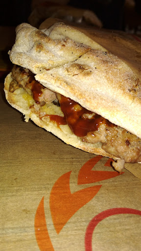 ………. un caro amico di zona, mi dice domani ti porto a mangiare un panino strepitoso, ci siamo già andati con altri amici ed è piaciuto Entriamo, ci accomodiamo e mi accorgo di essere in una Pucceria!?!??? Leggo il menù con fiducia, le pucce son fatte al momento, mhmhmhmh! Sono Salentino ed orgoglioso, non credo che siamo in una pucceria, presumo che, come al solito, si dia forma ad un panino tipo medaglione rotondo, ma di pasta lievitata, per questo la velocità di cottura ed il fatto che sono sempre calde, la puccia è un altro pianeta Comunque, scelgo la mia con degli ingredienti gustosi e saporiti, anche i miei amici fanno lo stesso, ci facciamo portare delle patatine, x spizzicare nell’attesa, ben fritte, prodotto naturalmente congelato, ma di buona resa Dopo 15 minuti di attesa arrivano le ns pucce, come previsto, ho già litigato in un locale a Lecce che le spacciava x prodotto tipico e non mi va di infierire, stiamo a quello che ci hanno portato e facciamo una recensione attenta Loro lo scrivono e sottoscrivono che si tratta di Puccia Pontina x non incorrere nelle critiche degli addicted come me Diciamo che alla fine le materie prime con cui sono farciti questi panini sono di buona qualità x cui non infierirò, il mio Nicolosi era notevole se non parlassimo della cotenna del maiale che riscaldata in microonde l’ha resa gommosa mentre invece dovrebbe risultare croccante, al punto che si attaccava ai denti e toglierla con le dita dalla bocca non è stato il massimo Alla fine, la vasta scelta di pucce, denominate con nomi di luoghi della zona è tanta e tale ce non puoi dire che non ci sia dietro un lavoro attento e minuzioso, ma nulla a che vedere con la puccia, che in Salento è fatta di farina di semola rimacinata, lievitata 72 ore e cotta al forno a legna d’ulivo, però si, dai, una pausa x un...
