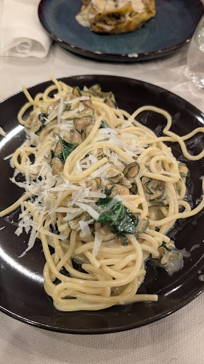 Siamo arrivati in questa location verso le 21.00 ma pur avendo prenotato abbiamo assistito ad un vero e propio trasloco di tavoli da parte del... non si capiva chi era il proprietario o il manovale di turno, vabbe dopo questa scena pietosa che abbiamo visto dovevo giá fare retromarcia e andare via! beh, perché no, a mangiare un panino dall'ambulante visto quello che sto per raccontate. questo era l'entree di benvenuto, uguale a quello che ci hanno servito 5 persone prenotate il cameriere ,proprietario, o manovale,si e presentato con 3 tozzetti di pane con (visto la mia esperienza culinaria)non sono riuscito a risalire ne con gli occhi ne col gusto di cosa ci fosse sparso sopra. detto questo passiamo a leggere il menu: antipasto, una fettina di capocollo, una ricotta tirata fuori dal frigorifero e si sentiva tutto il sapore di frigo. la cosa che più mi rattriste era quel bocconcino tagliato a metà! non ho parole, menu fisso di 40 euro, ravioli con limone, stracciata e gamberi... il locale si spaccia per pastificio ma i ravioli erano comprati perché io non ho mai visto una pasta fatta in casa troppo uniforme lasciando stare anche la quantità che potremmo anche tralasciare ma la qualità di cui il ristorante vanta non c'era. gli gnocchi scotti e freddi e senza sapore li mettiamo da parte... poi ci presentano la (chiamano) frittura mista di pesce: 4 anelli di calamaro con tentacoli compresi, si sono dimenticati anche il resto della paranza. detto questo voglio concludere che il bicchiere di vino era quello che in cucina serve per sfumare, il dolce della casa che non è mai arrivato, ma secondo me non ci siamo persi niente. concludo dicendo la ristorazione é una cosa seria, é un biglietto di benvenuto del nostro paese, rovinato da questi inventati ristoratori. l'arte culinaria é una cosa e cucine da...