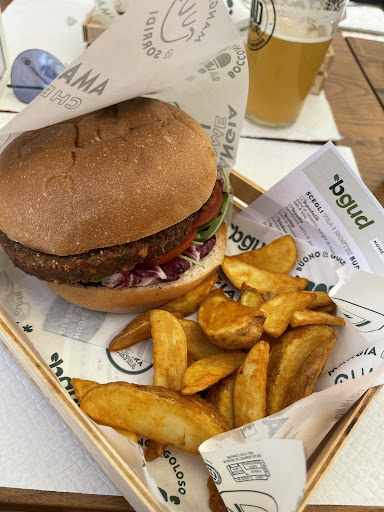 Bgud was definitely a pleasant surprise in the middle of nowhere, very unexpected for rural Basilicata! I’ve been looking for a place that would serve vegan food for a while now, but I haven’t had any luck finding anything until i came across this one little place. You can customize your burger and add sides like french fries or seasoned potato wedges (i took the wedges). The burger was great and the bun I ordered was soft and chewy despite being gluten free. The outdoor/indoor area is nicely cared for as well as the restroom. The service was nice and available to specific requests and they also offer a wide variety of breakfast options with some of them being vegan as well. One little side note is that i would have preferred having a toothpick-like utensil to eat my fries with, rather than having to pick them with bare hands but there’s always room for a little improvement isn’t there. Nonetheless, highly satisfied and will...