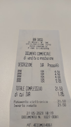 Read moreCon 3 amici (totale 4 persone) decidiamo di rinfrescarci con una bibita in attesa che finisca di piovere prendendoci 1 Menabrea e 3 Corona. Ambiente tranquillo e accogliente, personale gentile e sorridente...dispiace scoprire, purtroppo non al momento, che le consumazioni addebitate erano 5 e non 4 (sembra strano che possa trattarsi di alcuni stuzzichini che non avevamo richiesto). Malizia o errore in ogni caso lascia l'amaro in bocca un aumento del conto di quasi il 30%, ad una sosta che altrimenti sarebbe stata...