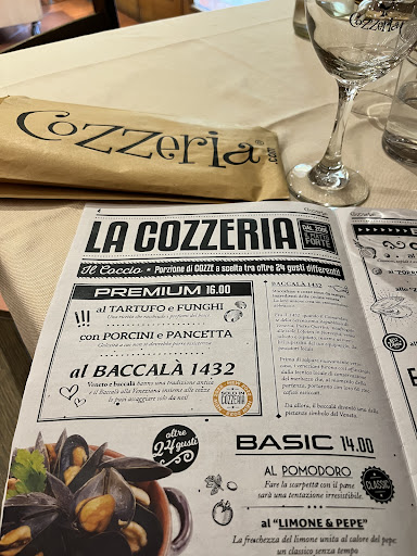 Read moreIl locale si trova in una vietta interna di lazise,il metodo di prenotazione è molto efficiente e fatto bene(si consiglia di prenotare)ci sono qualche tavolino fuori e all'entrata si viene accolti da una signora molto gentile,all'interno c'è una sala principale con il bancone del bar poi sulla destra un piccolo corridoio che ti porta su un altra sala molto grande,spaziosa e favolosa che dà sulla stradina. La redamento è molto caratteristico e piacevole,anche l'apparecchiatura della tavola fa la sua bella figura. A prendere l'ordine c'è un signore molto cordiale,professionale e tanto simpatico che ti sa indirizzare su cosa prendere visto che di cozze ci sono molti gusti..non vi preoccupate perché a chi non piace le cozze c'è sempre una buona alternativa. Noi abbiamo preso cozze alla carbonara, fritto senza spine mezzo di bianco alla spina frizzante,come dolce semifreddo al pistacchio e un caffè per un tot di 50€ prezzo giustissimo a mio avviso. Ora parliamo dei piatti Se ami le cozze qui c'è n'è sono..in molte varianti che sono assolutamente da provare le porzioni sono giuste e ti viene fornito secchio per i gusci, tovaglietta per evitare di sporcarsi e la salvietta per le mani. Nel complesso il piatto mi ha soddisfatto unica pecca che non tutte le cozze erano calde. Il fritto ben fatto senza una panatura eccessiva,pesce buono con qualche verdurina e non eccessivamente unto. Il dolce magari andava un attimino scongelato perché era ancora duro ma basta aspettare un'po. Ci sono 2 turni per prenotare ovviamente questo vale per i fine settimana,con il primo turno si ha 1 ora e 45 di"tempo" e ci sono molti orari che si possono scegliere,con il secondo turno non ci sono problemi ma presumo che si parli dopo le 21. Si può prenotare tramite il loro sito e si ha la conferma circa dopo mezz'ora con messaggio WhatsApp e sulla propria mail. Nel complesso il locale e il menù mi è piaciuto molto e sicuramente ci torneremo per provare altri piatti. N.b.:i piatti di cozze hanno molto sugo nel fondo,ma non vi preoccupate vi viene dato una bella pagnotta morbida tagliata per far una...