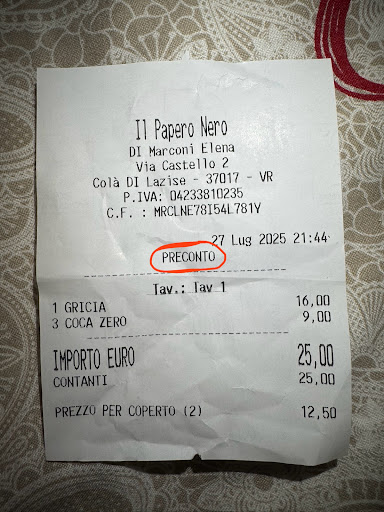 Domenica sera prenotiamo un tavolo per due alle 20:30. Ci accomodiamo, ordiniamo due pizze e attendiamo. Dopo circa 45 minuti arrivano: buone, nulla da dire… almeno all’apparenza. A un certo punto, mordendo una fetta, sento qualcosa di duro tra i denti: dentro la pizza, nascosto tra la salsa e un pomodorino, c’è un pezzo di vetro piuttosto grande, circa 3x2 cm, verosimilmente parte di un calice da vino. Subito lo facciamo notare al personale. Pochi minuti prima, la stessa persona che stava al bancone, una donna con la frangetta (presumibilmente la proprietaria), aveva fatto cadere qualcosa in cucina, proprio dietro di noi. Nessuno sa come, ma quel VETRO È FINITO NELLA MIA PIZZA. Ci vengono rivolte delle scuse, e ci viene proposto prima di rifare la pizza (che era praticamente finita) e poi, dopo il nostro rifiuto, un dolce per “rimediare”. Ma dopo aver rischiato di ingoiare un frammento di vetro, la fame era già passata da un bel pezzo. Alla cassa, ci vengono tolti la mia pizza e i due coperti – un gesto minimo, vista la gravità della cosa. Ma il colmo arriva subito dopo: NON ci viene emesso uno scontrino fiscale. Solo un preconto. Dopo un episodio di questa gravità, avere la faccia tosta di evitare lo scontrino per “rientrare nello sconto fatto” è pura avidità. Non ci aspettavamo la cena offerta, né gesti eclatanti. Ma un minimo di serietà sì.