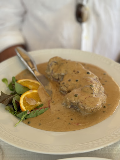 Die Vorspeise, Melone mit Schinken, lies lange auf sich warten. Für 14 Euro 3 Bötchen Melone mit Schinken und welke Salatblätter und angetrockneten Orangenscheiben als Deko.