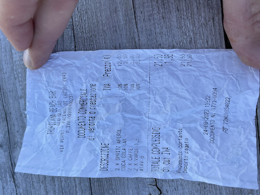 Read moreAperol taroccato,non si capisce cosa mescolano dentro due sorsi bruciore di stomaco da far paura. Stuzzichini assenti,prezzo 6 euro. Acqua naturale mezzo litro a euro 2. Coca cola è l'unica cosa che si salva, d'altronde è in lattina :-) non commento i prezzi sei in riva al lago ,d'estate, ci sta,ma la SCORTESIA del personale che ti mettono sul tavolo appena ordinato il bere un biglietto con TAVOLO RISERVATO ti dice che l'aperitivo te lo devi bere in 25 minuti. Magari avvisare prima così uno può scegliere di fermarsi o meno. Siccome non è la prima volta che ci andiamo,ci spostiamo sempre dal lago, per cambiare aria, sappiamo come funziona l'estate con i turisti. La presa in giro di oggi ci farà ripensare seriamente a questo posto ,non ci torneremo più. Saper lavorare e saper guadagnare è l'anima del commercio, purtroppo non sono tutti in...
