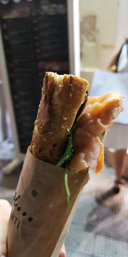 Read morePosto in pieno centro, si affaccia su piazza Sant'Oronzo e sull' anfiteatro il locale dispone di un bancone all interno e alcuni tavolini all'esterno ove è possibile consumare la propria ordinazione. Mi piace la gestione delle ordinazioni in quanto è veloce e funzionale, si ha la possibilità di scegliere panini "preimpostati" dal tabellone oppure di crearlo a piacimento. La qualità è sempre eccellente e non delude mai, l'ultima volta ho provato il pane ai cereali che è stato una bomba! Consigliatissimo. Ci sono panini a base di pesce (tonno, salmone, polpo) e di carne (i salumi si sprecano), con aggiunte di svariati formaggi, salse e verdure. I prezzi si aggirano nella media intorno ai 5 euro a panino, ma ne valgono la pena considerando anche la locazione del locale. Non ho ancora avuto modo di provare le insalate. I ragazzi che lavorano sono il top. Simpatici e disponibili, dal look ordinato. Da tornarci...
