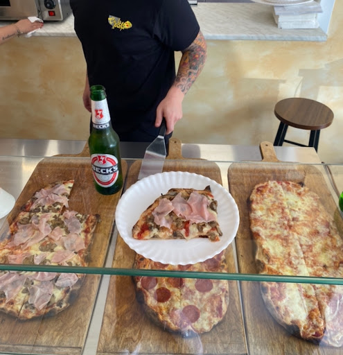 Read moreOttima pizza pala, con vasta scelta di condimenti. Possibilità di mangiare sul posto, ma i tavoli non sono prenotabili e neanche numerosi. Ordinazioni sul posto, gestite tramite biglietti numerati. Nel periodo estivo, parcheggio problematico, essendoci nelle immediate vicinanze, altri locali con forte afflusso di clienti. Non abbiamo assaggiato altri prodotti del loro...