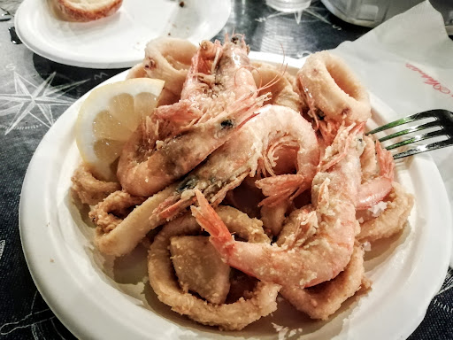 Filthy and decadent place in my opinion, placed in a location that looks like a dump, the restaurant itself looks like a shack. People smoke at every table, "constantly", so you'll choke on each bite you take. The request for a non smoking area will be discarded once you get there and the place is completely packed. Food and wine will be served in silly plasticware. Fried calamari and octopus are rubbery, undercooked, chewy and salty beside being frozen of course. Mussels? I didn't see any, we got just empty shells and the broth looked and tasted as filthy water from a pond. Pittule were super tiny and soaked in oil, cozze gratinate were just unacceptable to even look at. Topped and soaked in wet breadcrumb, no flavor and cold, such an unpleasant dish. So, considering the bad food, emaciated/sick cats around tables begging for food, cigars and cigarettes smoke punching your face on each bite and arrogant staff, I'm crossing...