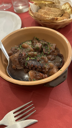Me and my partner had dinner here on the last night of our holiday and were blown away by the food and friendly servers. We ate the octopus cooked traditionally for a starter between us and can certainly recommend for any seafood lovers. I had the ciceri e tria (pasta with chickpeas) for a main and my partner had the pasta fatta in casa con sugo di braciole pugliesi (pasta in tomato sauce with pork), both traditional dishes and very tasty. We shared a bottle of local wine for €15 too which was a brilliant compliment to our dinner. The staff were more than happy to help with any questions and offered us some more bread after we had eaten the original portion mopping up the sauce from our starter!
