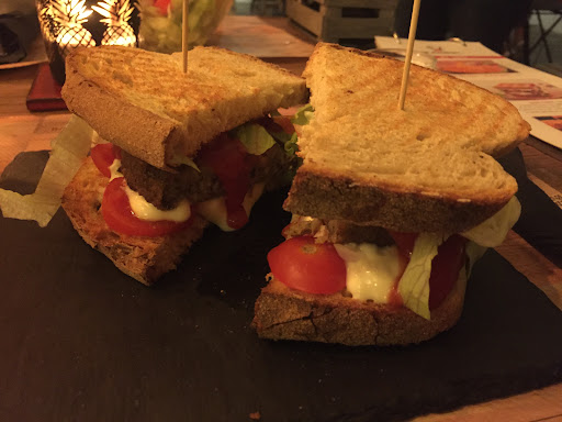 For vegans, they only serve bruschetta, salad with smoked tofu and a vegan burger. In a previous review I read the burger buns were bad, happily they chose to switch it out for tasty fresh bread slices. Burger and salad were simple but decent, a great occasional change for pizza...