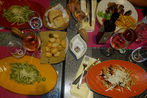 Went here last night, we were seated quite quickly. We sat outdoor on the street, nice atmosphere. Took 25 minutes for them to come and put down place mats and cutlery and another 15 to take our order with a bottle of wine and water. Starters arrived within 3 or 4 minutes but water and wine was another 10. Starters were OK. Our mains arrived pretty quick after starter dishes were removed. This was not so good, the pasta dishes were presented like a child's pasta dinner, nothing at all visually appealing and tbh didn't taste hectic either, i left half behind. The couple next to us ended up finding piece of metal in their dishes. Their mains arrived when their Starter dishes hadn't even been cleared and they had to take the dishes from the table themselves in order for the waiter to place their main dishes down. Not fantastic service IMO. It's a very basic place to eat and I wouldn't recommend. We foolishly sat on a whim because it was getting late. So if you have time I suggest you go...