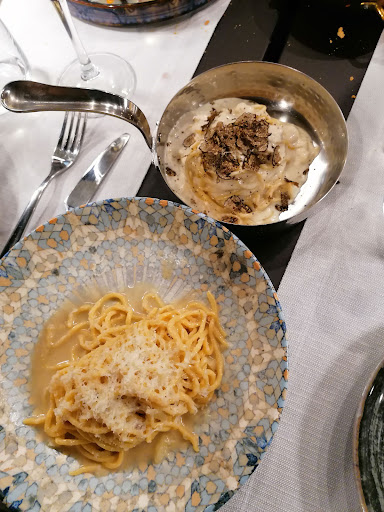 The service: all the waiters were kind and attentive delivering a superior experience. We struggled finding a wine that suited the taste of the 4 of us and the waiter was super calm and nice about it. Not getting annoyed about us tasting 4 wines before deciding. At the contrary they were like "don't worry the most important is you enjoy your food and your wine". For me it's those type of attention that really makes a difference.