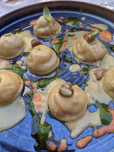 Read moreOur first time in Lecce. This is a fabulous, upscale restaurant inside an old, restored Palazzo. Very creative, sophisticated dishes, with amazing flavors and presentations. The chef is a genius. We had the “candy” pasta stuffed with eggplant parmigiana, as well as the aglio e olio linguine with fish broth, both outstanding. This was followed by a melt-in-your mouth beef cheek, along with a fabulous veal chop Milanese (breaded) - this last piece was a huge portion, could have easily just shared this item. Both also amazing. We shared (we were stuffed by this point) an apple tarte with a basil/hazelnut semifreddo, a perfect end to this meal. The sommelier/maitre d’ guided us to a wonderful bottle of Pugliese red wine, Tenute Chiaromonte. Fantastic, super attentive service. Highly recommend this establishment. Cannot wait to return at some point in...