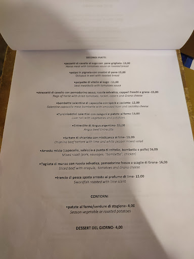 Read moreAbbiamo mangiato in questo locale in quattro. Tralasciamo le sedie che cigolavano e dondolavano in una maniera impressionante e la nostra ansia nell’arrivare integri a fine cena. Abbiamo atteso tanto appena arrivati, pur avendo un solo tavolo oltre al nostro. Abbiamo preso due antipasti di fritti, veramente miseri per il prezzo (9€). I pezzetti di cavallo al sugo erano buoni ma il pezzo forte di quel piatto, più che la carne, erano i grani di pepe intero. Le braciole di vitello al sugo erano buone. La tagliata non era una tagliata ma più una fettina sottile, cotta anche troppo. Forse su i 150/200 g, per il modico prezzo di 16€, assurdo. E le mezze maniche di grano arso al pesto di basilico (e altri ingredienti che ora non ricordo) erano completamente asciutte. Il sapore del pesto c’era ma di verde non c’era nulla nel piatto. La pasta scendeva a fatica, il pesto di solito è molto cremoso (insomma, se fatto bene) ma in questo caso era inesistente. Quindi, per queste porzioni misere e una bottiglia di acqua (tra l’altro riempita dal depuratore), abbiamo speso 83€. Sono rimasta delusa, speravo in qualcosa di meglio visto anche la scelta di Alessandro Borghese di includerlo nel suo programma. E invece è stato deludente. Mi dispiace lasciare questa recensione ma io sono salentina e quelli che abbiamo mangiato non erano certo piatti della nostra tradizione, o meglio non erano fatti secondo la tradizione. Mi dispiacerebbe se un turista giudicasse la nostra cucina mangiando in...