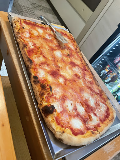 Si presenta così: tavoli all'esterno sul marciapiede erano oramai impilati. Servono anche pizze per asporto, il locale è composto da 2 stanze piccole sulla destra ci sta il bancone del pizzaiolo di fronte l'ingresso, di lato al bancone (a sinistra stanza), non ricordo se sono 5 o 6 file per 4/6 persone a fila, percorrendo il corridoio tra bancone e tavoli,si entra nella sala in foto del locale, con tavoli accoppiati ci sono altre 5 / 6 file di tavoli, in fondo poi la coppia di tavoli e disposto uno a destra e uno a sinistra (dove ero io seduto) al muro in fondo ci sta il divanetto per sedersi non la sedia. I prezzi sono abbastanza contenuti, sul listino ci sta il prezzo di una pizza metro, quindi per la pizza tonda da calcolare la metà del listino, perciò se leggete (esempio prezzo numero a caso), una Margherita 10€ non prendete paura come me, il valore della tonda sarà 5€. Ho fatto solo la foto sullo sfondo del locale non com'è disposto. Prezzo compreso acqua e coperto intorno a 12€