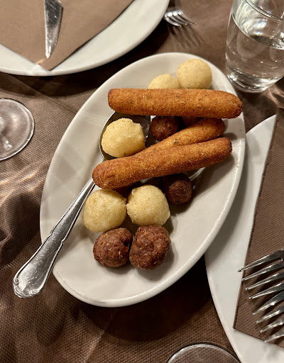 Read moreSiamo stati da loro due volte a cena, e la parola d'ordine è sempre stata FRETTA. Hanno provato a sparecchiarci il tavolo dai piatti dell antipasto, quando ancora gli antipasti ordinati non erano terminati. E l’abbiamo dovuto dire noi al cameriere, quando in realtà avrebbe dovuto già saperlo lui. Dopo due minuti aver ricevuto le restanti portate di antipasti ordinati, ci sono arrivati i piatti ordinati come seconda portata .. quando ancora tutto il tavolo doveva terminare l antipasto, e abbiamo ceduto ognuno il proprio piatto dell antipasto pieno. Si può dire che ci è stato tolto il boccone dalla bocca. È arrivata un entrecotte (definita dal cameriere come una carne fuori menu’ da 60€ al kilo, così tenera da sciogliersi in bocca ) che anche il cane ha titubato prima di mangiarla. Carne piena di filamenti nervosi e di grasso, veramente immaginabile. Ne avevamo ordinate 3, e sono rimaste nel piatto tutte. Nel momento dell esposizione del problema al cameriere , è stato come se ci stessimo lamentando di una piccola cosa, e non ci ha dato più di tanta importanza. Camerieri che forse esano impegnati a fare chissà cosa, erano introvabili. Alzata dal tavolo tre volte nel corso della “cena” per poter CERCARE un cameriere per ricevere i condimenti per l insalata, del pane , e del vino. Eppure il locale era vuoto. C’era soltanto un altro piccolo tavolo occupato oltre a noi. Sembrava di essere a casa propria , dove per ogni cosa che serve bisogna alzarsi e andarla a prendere in dispensa. La prima volta che sono stata in questo posto, mesi fa, successe la stessa cosa, ognuno mangiava l antipasto appena arrivato , ed iniziarono ad arrivare tutti i primi e secondi ,sembrava di essere ad un all can eat di sushi . Direi che dopo due possibilità date e sprecate ad un posto storico e non tanto economico, non ci...