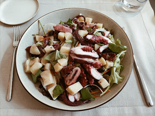 Read moreLocation, piatti e personale a mio avviso, perfetti. Ci sono stata venerdì mattina per visitare Lecce. Avevo desiderio di prendere una serena colazione in tutta tranquillità. All'ingresso vi era la receptionist (mi scuso se non è questo il termine adeguato) che mi ha chiesto il green pass com'è giusto che sia e poi mi ha invitata nella sala dove vi erano vari tavoli con colori diversi. Vi erano varie sale, ognuna con uno scopo diverso. I vari oggetti antichi d'esposizione arricchivano ogni angolo marmoreo di quel verde che dava un senso di regalità a tutto l'ambiente. Pulito, elegante e raffinato. Appena entrata sono stata invitata a sedere e mi è stato chiesto cosa desiderassi. Quindi come colazione essendo intollerante al lattosio, ho preso un muffin acre con un impasto morbido e con due piccoli frutti di bosco freschi che potevano essere mangiati benissimo e poi un semplice cappuccino con latte di soia con cacao, caldo né troppo né meno. Il personale molto attento, disponibile e soprattutto umile. Non sono stata infastidita da nessuno, non vi ho visto invadenza e né indelicatezza. Meravigliata della location, ho voluto provare il pranzo nella loro sezione assegnata "Ammos" ai piatti con varie prelibatezze di mare. Qui in elenco quel che ho scelto in dettaglio: Polpo Salad verdura, olive, polpo, olive e carote (unica pecca, mi è sembrata un po' più salta ma dipende dal gusto) e Polpette di polpo, mayo alla menta, salsa ponzu, zucchine alla scapece. (Buonissime, non ne ho lasciata neanche una. La salsa verde, quella myonese alla menta è stato un connubio perfetto con quelle polpette, che con essa rimaneva un gusto un po' acre. Buonissime! Le polpette non erano né troppo croccanti né troppo morbide, una via di mezzo. Sul menù troverete tra parentesi le varie numerazioni che si riferiscono a ciò che vi è all'interno a fine menù quindi per chi è intollerante od allergico può benissimo sapere cosa vi è all'interno di ogni piatto. Camerieri, menager in sala simpatico, disponibile e curioso di sapere se ogni cosa fosse stata gradita o fosse piaciuta. Riguardo l'attesa neanche 10 minuti, non mi sono annoiata per niente, ero da sola eppure è stato come se non lo fossi. Avevo altri commensali di fronte ma nessuno è stato invadente, persone semplici. Personale che era sempre sorridente, sempre gentile. Sono rimasta colpita! Il design, essendo un'appassionata, un mix fra antico e moderno, complimenti all'architetto. Gli specchi, il mobilio, quelle sedie a destra nell'ingresso. Ogni cosa al suo posto. Ho usufruito del bagno, che anch'esso era pulito, senza neanche un odorino fastidioso. Non si notava la piccolezza della stanza in quanto il tetto è altissimo pertanto per chi ci andrà gli sembrerà tutto immenso. Per essere una location rinomata e a mio avviso con piatti ben curati e con un'ottima presentazione, l'umiltà, la gentilezza non me la sarei aspettata. Consiglio vivamente di andare! Di provare i loro piatti, persino un semplice caffè. È stato un piacere condividere un po' di piccoli discorsi o anche solo qualche parolina con ognuno di loro. Ho visto, che lì sono tutti trattati allo stesso modo, una certa uguaglianza. Ringrazio tutti per la...