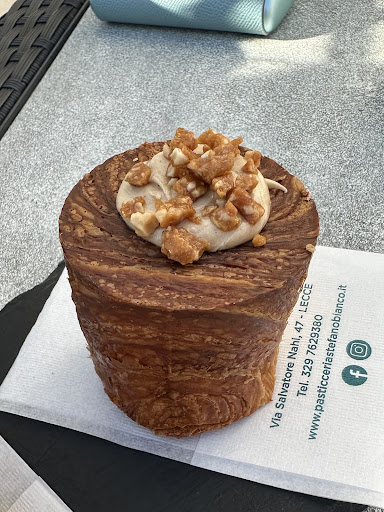 Read moreValutazione quattro stelle perché in tutto c'é sempre un margine di miglioramento, anche quando tutto sembra perfetto. Qui da Stefano Bianco ci si trova in un'officina dove tutto viene rigenerato e riportato a nuova vita attraverso sperimentazione e ricerca di gusti e abbinamenti sempre nuovi e talora inediti. Tutto ciò è possibile solo quando si è perfettamente padroni della materia e Stefano, padrone del classico, può permettersi una ricerca continua di abbinamenti di gusti mai superficiali. Qui ritrovi la più pura e classica tradizione leccese dell'arte pasticcera rivisitata ed esaltata in nuovi abbinamenti di gusti attraverso l'uso di prodotti selezionati. Arte pasticcera sviluppata a 360 ° con piena soddisfazione dei palati più esigenti e raffinati. Improponibile il rapporto qualità prezzo al ribasso: la qualità e la professionalità hanno un costo sul prodotto finito ed è giusto che sia così. Gusti non proibiti per chi ha problemi alimentari che sono superati brillantemente senza rinunciare al giusto piacere del palato. Interessante, e sempre all'altezza della migliore qualità, il servizio catering che prevede varie soluzioni per soddisfare ogni esigenza ed in qualsiasi circostanza. Per il periodo natalizio non perdetevi gli ottimi panettoni, ovviamente artigianali. Ce n'é una scelta incredibile per soddisfare ogni gusto e fare un'eccellente figura con amici e parenti. Un ulteriore commento positivo va riservato all'ambiente ben accogliente e confortevole. Quindi un locale di RIFERIMENTO CERTO ALL'INSEGNA DELLA RICERCA NELLA TRADIZIONE...
