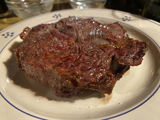 Read moreEsperienza da dimenticare. Ore 20.30, locale totalmente deserto, ci accomodiamo in due. Ci portano subito una ciotolina con quattro (di numero) pomodorini ed una con un cucchiaino di ricotta forte, cestino di pane e una spina piccola. Dopo oltre mezz'ora dall' ordine ci arriva la porzione di patate. Dopo altri dieci minuti le entrecote... sbagliate. Quella che doveva essere ben cotta era al sangue, quindi non è stata quasi toccata. Quella media cottura era stracotta e con un'aggiunta di funghi porcini mai chiesta. È stata rimandata indietro, chiedendo di togliere i funghi. Visti i tempi del servizio non potevamo attendere che ne preparassero un'altra. Inguardabili e immangiabili, entrambe. Lo abbiamo fatto presente al cameriere quando ci ha chiesto se andasse tutto bene. Risposta laconica "mi dispiace". Al momento di pagare ci aspettavamo almeno un piccolo sconto per gli errori commessi, invece abbiamo pagato 40 euro per digiunare. Cerco sempre di essere comprensiva con chi lavora ma quanto accaduto non è giustificabile in alcun modo: il locale era letteralmente vuoto, solo due clienti da servire, riescono a sbagliare un'ordine così banale e neanche un cenno di scuse. Ovviamente non ci tornerò più e lo sconsiglierò...