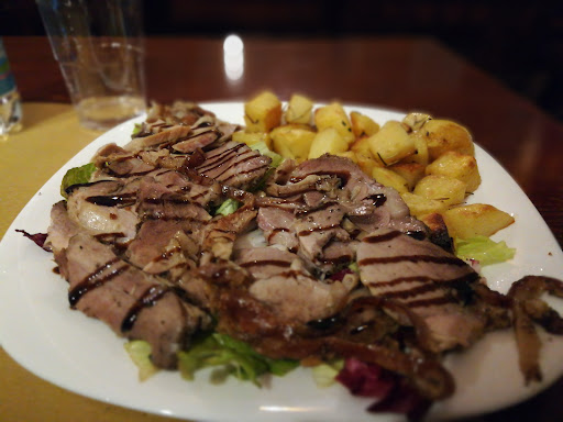 Dopo dieci minuti di attesa nel nulla, arriva il proprietario: maleducato, scostante, con modi che definire professionali sarebbe una presa in giro. Ordiniamo due porchette, due toast al salmone e un’insalata. Risultato dopo 45 minuti di attesa: • Toast immangiabili, secchi e disgustosi. • Porchetta molliccia, bollita, senza alcun sapore, con patate tristi e molli. • Insalata palesemente confezionata, buttata lì senza condimento. • Pane secco e raffermo, da cestino dell’umido.