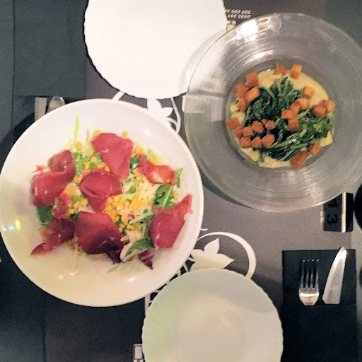 Read moreWe ordered an Insalade, Primi Piatta and Bruschette, a glass of wine and a small bottle of craft beer.