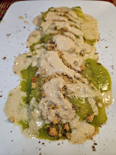 Staying in Lecce for four nights, we passed this restaurant several times on our strolls back to our apartment. The atmosphere is so lovely, that one friend said âwe must eat here one night before we leave.â So that we did, on our last night. The atmosphere was matched by the wonderful service of our delightful waiter, as well as by the sophisticated menu and delicious food. We ordered the unusually named âraw shrimp cheesecakeâ, which had raw shrimp and cheese but fortunately did not resemble a cheesecake as it is known in the US in any other way. Instead it was a refreshing appetizer with chopped peaches, chopped raw shrimp and cheese. We also ordered a beef and buffala mozzarella appetizer, which was abundant and delicious: raw beef a la beef tartare. A guinea fowl special with potatoes and vegetables did not disappoint. My pasta with beef ragu was on the salty side, but my taste buds dulled by a recent cold, it did not overwhelm. Highly recommend having a leisurely meal at Vico deli Sotterranei. With a shared bottle of Prosecco for three, we spent âŹ35 per person. Very good value for money, especially considering other restaurants in the historic center can be pricey with lesser attention to creative menus. Sit outside, watch people stroll by and delight...