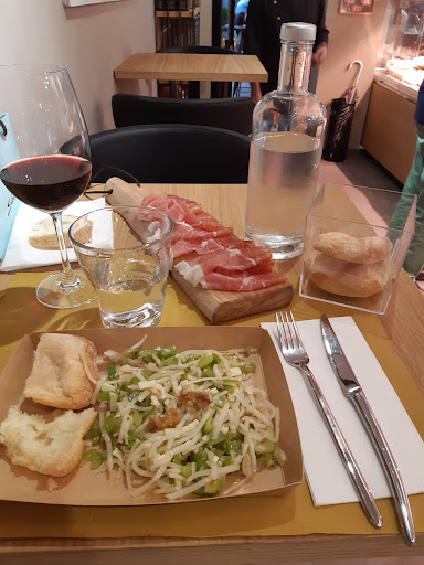Read moreCi sono passata spesso di fronte credendo fosse una macelleria, questa sera mi sono fermata per una cena veloce e devo dire che ne sono rimasta davvero soddisfatta: un'ottima scoperta! Si tratta di un'enoteca con cucina, senza menù fisso, diciamo. Ordini al bancone cibo e bevande e puoi accomodari per mangiare (con servizio al tavolo). Ottima scelta per quanto riguarda il cibo, davvero una vasta proposta di piatti, anche di carne o pesce cucinati al momento). Un'infinità di prodotti in vaso e formaggi da acquistare, da quello che ho notato tutti della zona. Consigliatissimo per un aperitivo o un veloce...