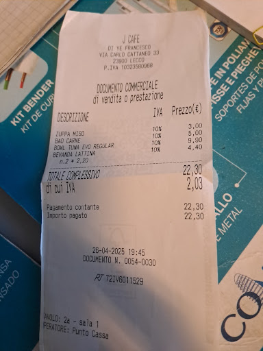 In sintesi, J Caffè è un locale pulito e corretto nei prezzi, ideale per un pasto veloce e informale se si ha voglia di una bowl standard. Tuttavia, la mancanza di piatti caldi disponibili (in particolare quello che ci aveva attirati), unita a un'atmosfera un po' anonima e a un'offerta di bowl che non si distingue, lo rendono un posto senza infamia e senza...