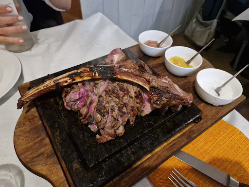 Io ho ordinato la bistecca Tomahawk (vedi foto), considerate che è costata 72€ (1.2kg a 6 €/etto come effettivamente dichiarato nel menu). Avendo provato carne simile svariate volte e non sapendo quanto costava avrei stimato circa 45 euro a giudicare dalla qualità percepita.