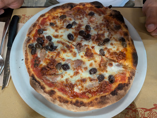 Una sera io e la mia ragazza passeggiando abbiamo pensato di prendere una birra in questo locale pizzeria in centro a Legnago visto che c'erano dei tavolini con sedie all'esterno fronte strada. Entrati e dopo aver chiesto se si potevano ordinare due birre ci viene risposto che avrebbero chiuso da lì a 10 minuti. Scegliamo quindi di tornare un'altra volta. Stasera passeggiando per il centro decidiamo di tornare qui e prendiamo due birre. Le birre ci vengono servite e dopo qualche minuto torna la cameriera al nostro tavolo con un pizza margherita presentandola come assaggio della casa. Rimaniamo stupiti di questa offerta e immagiamo sia un modo di farci assaggiare la loro pizza nella prospettiva di acquisirci come nuovi clienti. Ci sta. Arriva il momento di pagare. Alla casa il ragazzo mi fa il conto ed escono €14. Pago, ma mi chiedo quanto possano costare quelle birre per arrivare a €14, per cui per togliermi il dubbio chiedo spiegazioni su come si componga il conto. Mi viene detto che è il risultato della somma della mia birra, della birra della mia ragazza e la pizza che "abbiamo ordinato". Rispondo di non aver ordinato la pizza ma di essere stata portata da loro spontaneamente. A questo punto colui che penso fosse il titolare o socio, con un timbro di voce di uno che sa cosa dice, risponde che loro quando dei clienti ordinano due birre -di base- gli portano anche la pizza. Anche se un attimo prima mi avevano detto che avevamo ordinato noi la pizza.. 🤔 Dal titolare, dal timbro di voce di uno che sa cosa dice, mi viene anche detto che a Verona, di base, ti portano una pizza se tu ordini due birre, così deduco che essendoci seduti lì per bere un paio di birre, è stata una nostra mancanza non essere stati a conoscenza dell'obbligo di consumazione pizza.. 😂 🔫 Non ce la faccio più a continuare questa recensione 😂😂😂... Anche perché ho un pacco sullo...