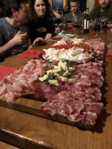 Lo consiglio anche per feste/cene/eventi vari, con un tagliere maxy secondo me si sfamano tranquillamente 10/13 persone. ah, e con il primo giro di bicchieri, in orario aperitivo, ti portano un mini-tagliere con alcuni prodotti della casa, come pizza, affettati e stuzzichini vari.
