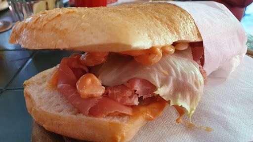 È un ristorante bello ma ho dovuto aspettare un bel po’ per 5 panini, il servizio è stato scandente ho ordinato 3 panini 19, di cui uno senza cipolla e uno con il tabasco, hanno portato prima quello senza cipolla che era giusto, poi dopo hanno portato uno che a detta loro era con il tabasco ma dopo aver portato l’altro hanno annunciato che non lo aveva e che invece quello lo aveva, dopo poco hanno detto che in realtà anche quello aveva il tabasco, dicendo quindi di aver portato 2 panini con il tabasco e mi volevano comunque rifilare quello con il tabasco dopo non averlo chiesto poi dopo aver chiesto di rifare il panino mi hanno fatto aspettare almeno altri 30 minuti in più mi volevano far pagare il panino che è stato mandato in dietro e per ciò non mangiato alla fine dopo dieci minuti di discussione e una chiamata alla proprietaria non ce lo hanno fatto pagare, esperienza pessima, molto...