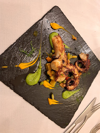 Read moreIl locale raffinato ed elegante, la qualità e la presentazione dei piatti è ottima. La disposizione dei tavoli e la mise en place è confortevole e permette una vivibilità più che discreta. Il menu e la cantina sono alla altezza dei palati più raffinati. Il personale non sempre soddisfa le premesse: il nostro tavolo è stato seguito da almeno 4 o 5 persone fra maitre e camerieri. Troppi e scollegati: nessuno sapeva cosa avevamo ordinato ma tutti ci avranno chiesto una decina di volte se “ la cena andava bene” costringendoci a delle risposte automatiche a domande automatiche ed impersonali. Assolutamente premurosi anche se a tratti impacciati i più giovani che sono assolutamente scusati della loro inesperienza per ovvie ragioni anagrafiche. Inqualificabile lo “specialista dei distillati” che farfugliando ammiccante uno sproloquio accademico da Wikipedia sui prodotti da offrire teneva una posa dinocolotq con mano infilata nel retro dei pantaloni, offrendo spiegazioni non richieste ma a soddisfazione di una pappardella imparata a memoria. L’accoglienza al locale viene fatta da quello che è presumibile sia il titolare, un imbronciato signore di mezza età, bofonchiante monosillabi senza neanche accennare ad un benvenuto o un arrivederci all’uscita. Davvero scortese.Il maitre competente e cordiale, purtroppo dimostra di non saper infondere alla sua squadra la stessa professionalità. In conclusione il cibo merita un 4/5, il servizio non più di un 3/5. Ritornerò fra qualche tempo curioso di vedere se abbiamo sofferto di inefficienze di assestamento, sperando ed augurando in un miglioramento. Consiglio al titolare, se stanco o non in serata di fare un passo dietro le quinte. Ne gioveranno tutti: clienti...