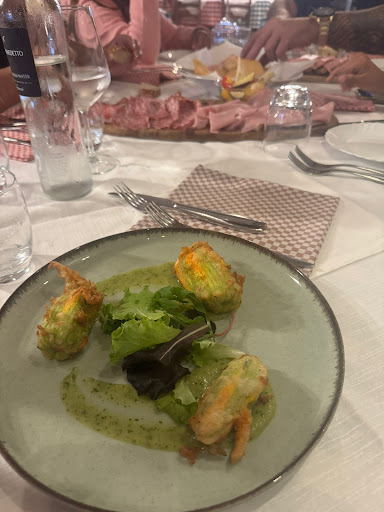 Read morePartiamo con il presupposto che abbiamo cenato una sera del 21 agosto di giovedì. Seduti al tavolo siamo in due famiglie al nostro ordine e arrivato al punto delle bevande il cameriere mi dice che come vino c'è solamente bottiglia o calice ed essendo l'unico a berlo un calice a 5/7€ anche no e na bottiglia da solo neanche. Quindi Acqua sapendo che il vino sfuso c'è sempre stato comunque continuiamo. Antipasti super Dagli affettati freschi ai fiori di zucca ripieni alla ricotta tutto buono. Passiamo ai primi e credetemi ne ho mangiati tanti in giro ma questi non mi hanno dato nessuna sensazione tipo mh che buono la prossima volta li ripetiamo no anzi li ho sentiti molto asciutti e insipidi. Carne allora partiamo dal presupposto che la carne era buona abbiamo preso una costata da 1.1kg due tartare una a gusto personale e una dello chef e due tagliate. Allora la tartare personale sublime quella dello chef "ma è un gusto personale non mi ha colpito" la carne la tagliata molto buona e con un buon sapore in bocca, la costata portata su pietra buonissima ma il servizio che ci è stata portata un po' meno tipo che c'è la lanciata sopra il tavolo perché il cameriere si stava scottando. "E che cacchio porta una portata alla volta e così non ti scotti non lanciare sopra il tavolo il cibo 😅". Tiramisù al cucchiaio Top buonissimo. Ambiente siamo al 21 di agosto e se dentro hai più di 40 persone non puoi pensare perché ha fatto un piccolo temporale al mattino di non accendere l'aria condizionata anche perché con quello che si paga mi sembra il minimo oltretutto zanzare che ci hanno accompagnato per tutta la serata e non siamo stati gli unici a lamentarsi. Al tavolo mangiando carne e bevendo vino in una sera d'estate si vuole stare in un clima mediocre e non in sauna. Penso di non ritornare forse sono capitato in una serata sbagliata a detta dei miei amici che me lo hanno...