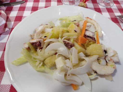 Read moreLocation in zona tranquilla, non manca il parcheggio. L'interno è ben curato, caratteristico e pulito. La sala è capiente con tavolate abbastanza grandi. Il titolare è simpatico e ci ha saputo consigliare bene sui piatti offerti. Ottime le proposte di pesce di cui sono rimasto soddisfatto. Buoni i ravioloni con pasta nera (colorata col nero di seppia) ripieni di capesante e canestrei. Anche il fritto misto ci è piaciuto,ben fatto, per niente unto e con gran varietà di pesce. Anche l'insalata di mare è risultata invitante e ricca di pesce oltre che di verdure. Il tutto mi è sembrato fresco,ben preparato e le porzioni più che soddisfacenti. Da menzionare il pan/pinza caldo che vi accoglie non appena seduti, irresistibile. A mio avviso i prezzi potrebbero essere leggermente più bassi ma bisogna semore considerare che si teatta di pesce. Dimenticavo,anche la pizza non è affatto male. Se siete nei paraggi vi consiglio di...