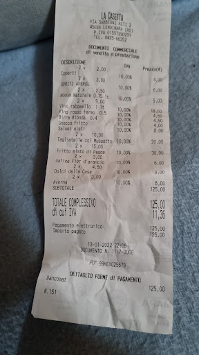 Read moreMangiato bene e porzioni abbondanti. Luogo tranquillo e gestori molto gentili. Quello che non mi torna è il conto. Quando ho pagato mi sembrava di avere speso molto. A casa controllo lo scontrino e hai voglia... Al conto è stato aggiunto 1 litro di acqua 1 litro di rabosello 0.5 vino rosso e una birra bionda media. Avrei dato 4 stelle se non c'erano inconvenienti. Non ho dato 1 Stella perché un po è colpa mia per non aver prestato attenzione al conto e non avere contestato subito. Il giorno seguente sono stato prontamente contattato dai proprietari per le scuse e un invito a passare in ristorante per...