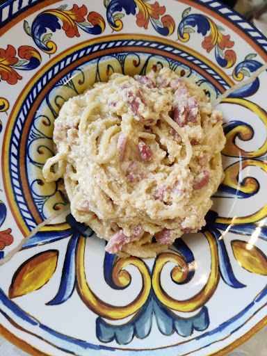 Read moreIo e il mio ragazzo abbiamo mangiato qui durante il nostro pernottamento a Carlentini e, vista la qualità, ci siamo tornati più volte durante la vacanza provando sia primi che secondo. Come primi abbiamo provato la carbonara, ottima anche se un po' "frittatosa", ma il guanciale era cotto alla perfezione; ed un piatto di pasta alla norma divino, fatto con pasta fresca in quantità a non finire, da leccarsi i baffi. Come secondo, il mio piatto preferito che penso mi resterà nel cuore per sempre: pesce spada alle mandorle. Meraviglioso, merita veramente tanto, arriva un piatto enorme e nonostante il pesce sia segnato come surgelato, risulta super tenero e "fresco", cotto ottimamente e reso buonissimo. Il mio ragazzo si è buttato su una frittura mista di pesce, anche qui nulla da dire, ha ripulito il piatto. Ci tengo anche a sottolineare che i servizi da tavola son bellissimi, in ceramica decorata. Il servizio al tavolo è abbastanza veloce, i pezzi sono onesti e il personale cordiale e disponibile. Ci siamo trovati veramente bene, consiglio...