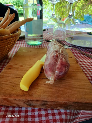 Cercavamo un posto verace e alla mano dove pranzare il 4 ottobre per il mio onomastico, essendo in visita nel territorio delle Langhe. Che dire, una vera sorpresa! Intanto si arriva passando in un territorio rustico e meno antropizzato attraverso noccioleti e zone incolte, poco prima di arrivare nel borghetto si incontra un allevamento di maiali liberi che lasciava ben presagire e così e stato! Una trattoria piemontese della vera tradizione, rustica, ruvida... Abbiamo iniziato degustando un salamino portato dalla proprietaria da tagliare secondo NS gusto, cosa che mi ha gasato, perché non lo fa più nessuno accompagnato con un quartino di dolcetto genuino che ben si sposava. A seguire io ho preso dei tajaren ai fiori e burro fatti a mano, ma per davvero, che ho trovato speciali per delicatezza e genuinità (non metteteci sopra il parmigiano perché rovinate il gusto), mia moglie ha degustato dei gnocchi al gorgonzola appena fatti in casa che si scioglievano in bocca. E dulcis in fundo uno zabaione in tazza che definire strepitoso è poco, un gusto che non assaggiavo più dai tempi di mia nonna. Non abbiamo assaggiato i secondi perché eravamo in viaggio e non potevamo "riempirci" troppo. La proprietaria cordiale simpatica e giustamente orgogliosa di spiegare i loro piatti fatti con ingredienti locali gestisce il locale con il fratello cuoco, a cui faccio i miei complimenti! Continuate così, torneremo ad assaggiare i secondi piatti! Conto...