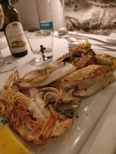 🍝 Menù 10/10 Una mangiata di pesce veramente squisita! Purtroppo ho preso solo una portata, una grigliata di pesce eccezionale, ma devo dire che già solo con quella mi ero saziato. La qualità del pesce era davvero ottima, ogni boccone era un inno alla bontà. Carta dei vini come da ristorante di buon livello, quindi prendeva da sola più della metà del menù: quello che ho scelto era un vermentino "della casa" ed era una goduria a ogni sorso.