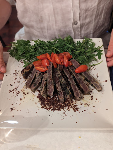 Decent place. We ordered the seafood taster antipasti, cod tagliatelle and tuna dish between 2 people. The food was hit and miss. Some items were quiet tasty (pickled tuna thing in the antipasti) but other items like the anciue in carrozza and the couscous were too dry. The tagliatelle was quite tasty and fishy (A+) but the flavours of the tuna dish did not hit right for me. There was technically nothing wrong with it, it just didn't work for me and it might for someone else. It was herb crusted and fried with chocolate flakes. The frying of the herbs made them quite bitter and chocolate was a strange sweetness. There were also massive salt crystals on it and once you ate those, all you could taste was "salty". The only thing that saved this dish for me was that the tuna...