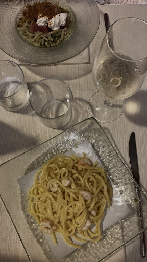 Read moreIl locale è in una posizione privilegiata in uno dei carruggi di Lerici e noi abbiamo cenato sotto un arco in pietra, creando quindi i presupposti per un atmosfera suggestiva e romantica. Il servizio è stato però non all'altezza, facendoci aspettare decisamente troppo, dimenticandosi il pane ed anche il caffè della ragazza che era con me. Abbiamo dovuto chiedere un paio di volte. Questo in parte è stato compensato dalla gentilezza e dalla bellezza di una della cameriere. Il cibo (uno spaghetto con le vongole ed i Taglioni al nero di seppia con le vongole) erano straordinari del punto di vista del sapore con un sughetto ben bilanciato e gustosissimo. La mia amica ha preso anche un buon calice di bianco. Anche l'antipasto di mare merita per il contrasto di sapori tra i vari assaggini. Purtroppo sia per il primo che per l'antipasto le porzioni erano insufficienti. Il mio dolce (frolla con crema e frutta) era sicuramente molto delicato ed anche la quantità era adeguata. Al contrario il sorbetto al limone non è piaciuto alla mia amica ma l'ho assaggiato anche io ed a me è piaciuto. I prezzi secondo me un po' troppo alti (72 euro) per quello che...