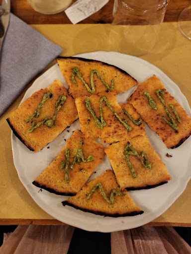 Our first pizza experience this trip. Were there a quarter hour earlier, standing at the door & told they only open at 7pm. So we waited, but kept seeing locals just walk in & seated. Finally got in for a table, was a challenge to get anyone to give us menu & take order. Thankfully, the pizzas didn’t need that long to be served. Was expecting a lot better for Italian standard, but it was average, not wow. They definitely need better knives for slicing pizzas. After exiting the restaurant, we then realized they have a large sitting area at the piazza, it was no wonder the staff are going in & out serving customers inside & bringing orders outside. So please be gentle with them.