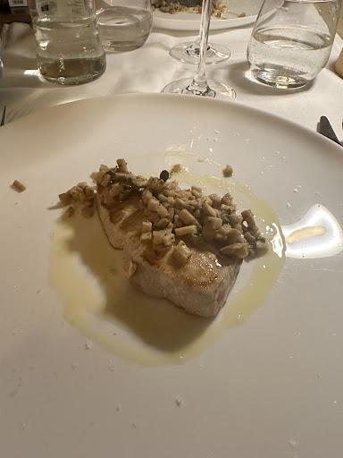 Read moreDas Restaurant ist auf angenehme Weise modern und mit einem stimmigen Lichtkonzept eingerichtet. Wir hatten das viergängige Menù Tellaro. Die Vorspeise, bei Niedrigtemperatur gegarter Polpo mit knusprigem Speck, war äußerst zart und wohlschmeckend, hätte für mein Empfinden noch eine Idee wärmer serviert werden können, was aber nicht besonders störend ins Gewicht fiel. Der Zwischengang, eine vergleichsweise große Portion schwarze Spaghetti mit Tintenfischstreifen, Gemüse und Chiliöl-Perlen war tadellos, aber geschmacklich etwas zu homogen, um wirklich zu begeistern. Das tat dann aber der Hauptgang, Schwertfisch mit Datteltomaten, Kartoffelscheiben, Kapern, Oliven und Pinienkernen aus den Ofen. Der Fisch war perfekt gegart. Die Fischhaut zu essen, war ein knusprig-zartes Vergnügen; das Fleisch sehr saftig, frisch und ebenfalls zart. Die Beilagen unterstützten den Hauptakteur aufs Vortrefflichste, jede für sich aromatisch, doch nie aufdringlich und bestens aufeinander abgestimmt. Das Dessert, ein Erdbeere-Honig-Minze-Sorbet auf Kakao-Crumble, war ein erfreulich leichter Abschluss, zwar weder mengenmäßig noch kulinarisch eine große Sache (ob uns die Kellnerin wohl deshalb noch einen zweiten Nachtisch anbieten wollte?), aber auch dies sehr fein und aromatisch - auf jeden Fall eines der besseren Sorbets. Der begleitende Wein, ein roter auf Ligurien, war eine gute Empfehlung der Kellnerin. Die Kellnerin fanden wir sehr professionell und freundlich. Zudem erbrachte sie als einzige Servicekraft an dem Abend eine Höchstleistung, wirkte dabei nie unaufmerksam oder gestresst. Leider hat man den Coperto-Zuschlag mit dem Verweis auf das Amuse Bouche und den Willkommens-Prosecco auf - gemessen am moderaten Gesamtrechnungsbetrag - schwindelerregende Höhen geschraubt. Es ist klar, dass das Lokal auch die Kosten für die nicht auf der Karte stehenden Leistungen einspielen muss. Dann sollten unseres Erachtens aber lieber die Preise für die Gerichte/Getränke etwas angehoben werden - sie wären es wert. Zugaben wie Amuse gueule und Willkommensschluck sich auf diese Weise „bezahlen zu lassen“, fanden wir diplomatisch ungeschickt. Insgesamt aber ein sehr erfreulicher Abend und zur...