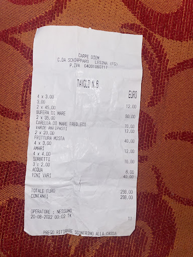 Read moreSono tornata quest'anno dopo il ricordo della scorsa estate in cui sono stata bene tre volte. Non so cosa sia successo ma dubito mi rivedranno. Iniziamo dalla proprietaria, molto scontrosa ( anche l'anno scorso era stata spiacevole in qualche occasione ma quest'anno davvero inaccettabile). Portate miserissime e unificate. Abbiamo ordinato due carrellate e due bufere però i piatti sono arrivati a centro tavola per tutti e quattro,senza alcuna comunicazione. Rispetto all'altro anno molto meno roba nelle pirofiline ine ine ine e a volte nemmeno della qualità che ricordavo(esempio parmigiana di mare un cubetto di 3cmx3cmx3cm, neanche i finger food vengono preparati di dimensioni simili) . Un antipasto che a persona costa 35€ non può prevedere un pezzo a persona. Servizio lentissimo e fretta alla fine per liberare il tavolo per il secondo turno. I ragazzi in sala bravissimi, a tratti imbarazzati ma gestione della...