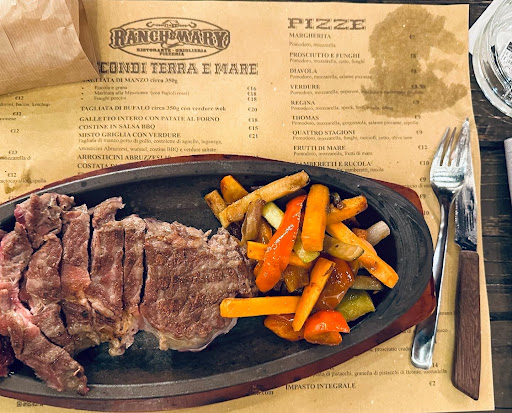 Se cercate carne alla griglia dallo spirito western, questo locale all’aperto in stile ranch è davvero suggestivo: tavoli in legno rustico, luci soffuse e profumo di brace che si diffonde nell’aria. Se odiate il caldo di questi giorni, il locale essendo in mezzo al verde, offrirà una bella temperatura fresca. La qualità della carne è indiscutibile: tagli selezionati, cottura perfetta e porzioni generose, davvero da veri appassionati. Ma lascerei scegliere al cliente la quantità di sale da aggiungere ai piatti. In alcune pietanze, il sale ricopre il sapore della carne. Essendo in stile western/ranch, il menù offre anche l'opzione pesce che abbiamo evitato perchè volevamo rimanere "a tema" locale.
