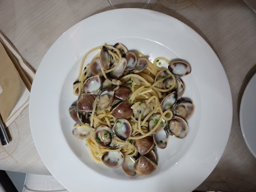 Read morePremetto che non ho cenato o pranzato presso il ristorante, ma mi sono limitato, perfortuna, a fare solo un aperitivo. Ci avviciniamo all'ingresso e il titolare ci intima in maniera non troppo garbata di metterci la maglietta, perché anche se è l'ora del sol leone c'è gente che pranza. Ok, messo la maglietta, mi aspetto di poter scegliere tra qualche drink, senza chiedere ricette particolari. Arriva la cameriera e anche lei con modo abbastanza scostante ci chiede cosa vogliamo. 4 richieste, tutto negato perché fanno solo spritz e altri pochi drink. Bene, arrivano i 3 spritz 80% ghiaccio in bicchiere di palstica, ma il prezzo è da cocktail vero. Chiediamo delle patatine, in 4, ci portano un pacchetto e va bene così... Sono rimasto scontento del trattamento, credo che un minimo di accoglienza al cliente...