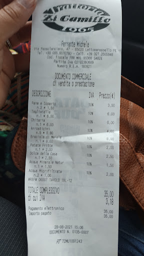 Sono 25 anni che ogni estate vado a mangiare da Zi Camillo e quest’anno nessuna eccezione, tranne il cambio gestione. Per me è stata una grossa sorpresa e devo ammettere che mi è inizialmente molto dispiaciuto. Nonostante questo, sono rimasta per provare la nuova gestione e non sono rimasta delusa. Il menù è stato modernizzato, ma con il mantenimento della tipicità del gestore precedente. Le bruschette ottime, sapori molto delicati, ma decisamente di qualità. Le pallotte cacio e ova, sapevano meno di cacio, ma a gusto personale, le ho apprezzate moltissimo. I ravioli con il ragù, ottimi, si sente che è stata mantenuta la ricetta originale. Il servizio è stato accogliente e cortese, il ragazzo preparato nello spiegare i piatti. Unica piccola pecca è stata la lentezza iniziale del servizio, ma si è ripreso immediatamente. I prezzi ottimali, molto simili a quelli precedenti. Le porzioni sono state leggermente rivisitate, ma saziano senza problemi.