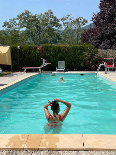 Read moreCamera sporca abbiamo trovato un pacchetto di terea usato pieno, muri sporchi, insetti e ragni a tutto spiano, bagno con incrostamenti di precedenti gel doccia e capelli/peli negli scarichi. Area esterna con ping pong, calcetto, attrezzi da palestra e tavolo molto carina ed ampia ma poco manutentata (mancavano i piedi di un giocatore per intenderci) pavimento dell area esterna non lavato di recente, piscina bella così come tutta la zona piscina ma poco manutentata con piastrelle facilmente sollevabili, sdraio comode e aggiustate ma vecchie e appiccicose in certi punti probabilmente la resina degli alberi,l'accesso alla piscina pieno zeppo di vespe, e in piscina c'era il rischio di essere punti sia dalle vespe che dagli innumerevoli tafani, proprietari simpatici e molto disponibili nel cercare di accontentare i clienti ma dovuto all'età non più così giovani sprovvisti di qualche venerdì, colazione con croissant e (come il proprietario che ha tenuto a specificare cottura lenta ad almeno 45 minuti che li rendono una meraviglia) e formaggi ottimi ma purtroppo non molto ricca, ''commerciale''. Purtroppo mancano le TV nella stanza e...